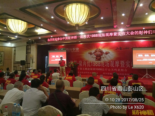 2017年8月24-25日,在蘇東坡的故鄉(xiāng)眉山市順利舉行了百分農(nóng)業(yè)四川區(qū)域2017-2018年度財神稻現(xiàn)場實收測產(chǎn)觀摩暨市場啟動大會。百分農(nóng)業(yè)總經(jīng)理江潤良,西南大區(qū)經(jīng)理楊總,四川壹稼人總經(jīng)理燕總攜團隊,及四川各區(qū)域的代理商、零售商和種植大戶200余人參與了會議。