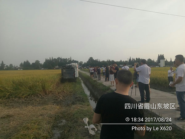 由于近期天氣不穩(wěn)定,暴雨不斷,為了給四川各地的代理商展現(xiàn)財神稻真實的高產(chǎn)穩(wěn)產(chǎn)能力,經(jīng)過我們和壹稼人燕總協(xié)商,我們分別于8月23日、24日,兩次對眉山財神稻200畝連片示范田進行了兩次測產(chǎn)。其中8月24日的測產(chǎn)現(xiàn)場有近50名來賓現(xiàn)場參與,現(xiàn)場產(chǎn)量分別為1620斤干谷/畝和1698斤干谷/畝,現(xiàn)場真實地測產(chǎn)數(shù)據(jù)給各地代理商、零售商、種植大戶展示了財神稻的高產(chǎn)穩(wěn)產(chǎn)能力。