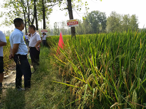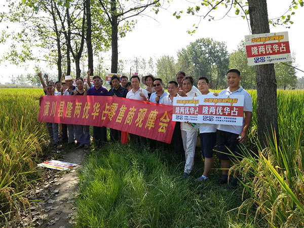 ?2017年8月28日,來(lái)自潢川縣各鄉(xiāng)鎮(zhèn)的20位核心零售商齊聚潢川縣傳流店鄉(xiāng)王營(yíng)村的隆兩優(yōu)華占示范田。雖然烈日炎炎,但是各位零售商還是非常認(rèn)真地觀察隆兩優(yōu)華占的優(yōu)秀表現(xiàn),同時(shí)還和別的品種做了對(duì)比,最后大家都一致認(rèn)可了隆兩優(yōu)華占在今年高溫天氣下的超高結(jié)實(shí)率。
