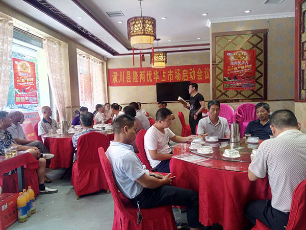 隨后大家來(lái)到室內(nèi)會(huì)場(chǎng),首先由代理商劉總對(duì)大家的到來(lái)表示熱烈歡迎。隨后亞華種業(yè)區(qū)域經(jīng)理許樹濱就公司基本情況、隆兩優(yōu)華占的八大優(yōu)勢(shì)、品種的運(yùn)作模式、品牌的重要性、市場(chǎng)維護(hù)及后續(xù)品種等方面向大家做了詳細(xì)介紹,最后代理商劉總就今年的銷售政策做了詳細(xì)介紹,堅(jiān)決執(zhí)行預(yù)定政策。