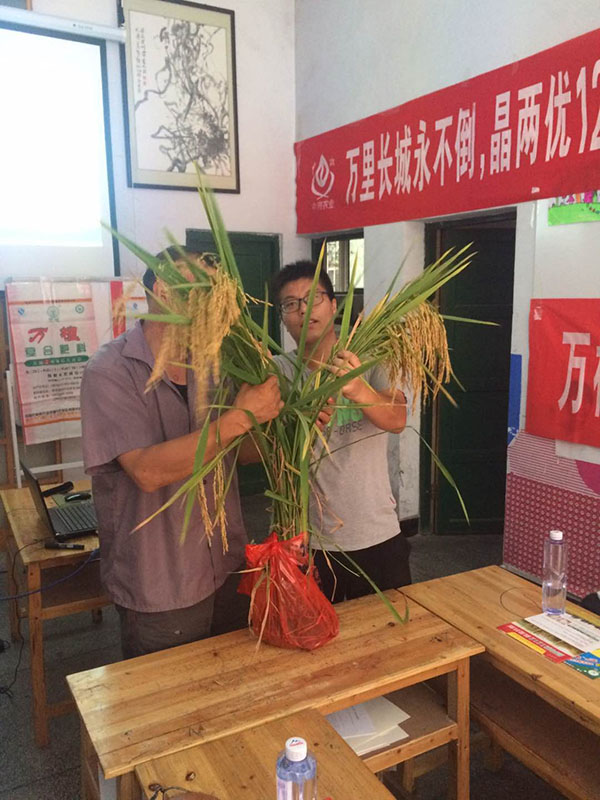 下午進(jìn)行了室內(nèi)會(huì)議,由張洋經(jīng)理給大家從“分蘗力、抗病性、肥力水平、米質(zhì)”等八個(gè)方面對(duì)晶兩優(yōu)1212進(jìn)行了講解,得到了零售商們的高度贊同。接下來(lái),晶兩優(yōu)1212縣級(jí)代理羅總進(jìn)行了總結(jié),他表示非??春镁蓛?yōu)1212,無(wú)論是米質(zhì)、抗性還是生育期都非常適合在洞口地區(qū)進(jìn)行推廣。會(huì)后,零售商們都紛紛表示明年要重點(diǎn)推廣這個(gè)品種。