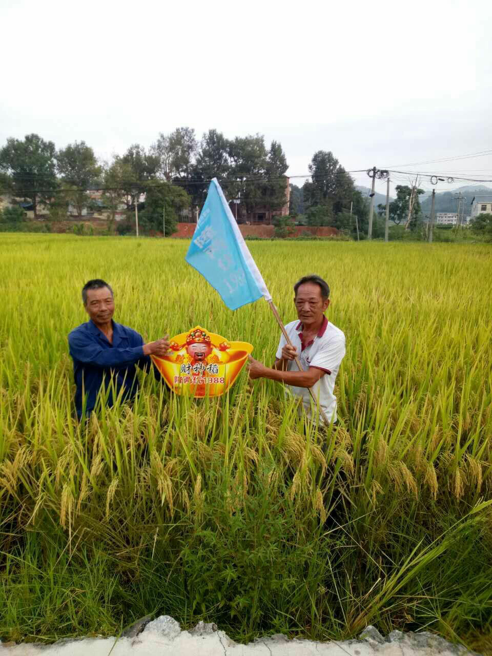 2017年8月30日一大早,在安遠(yuǎn)經(jīng)銷商葉永遠(yuǎn)和龍布鎮(zhèn)零售商廖章炳的組織下在龍布鎮(zhèn)召開了贛南首場財神稻隆兩優(yōu)1988現(xiàn)場觀摩會。