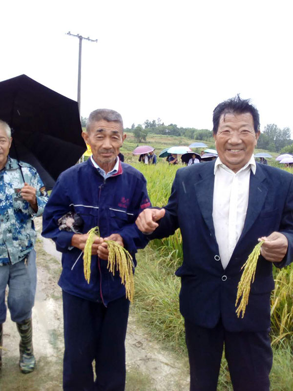 今年湖北廣水地區(qū)高溫、大風(fēng),很多品種出現(xiàn)結(jié)實率不好或倒伏現(xiàn)象,而財神稻——隆兩優(yōu)1988表現(xiàn)出來的結(jié)實率高、超抗倒的特性,得到了零售商和大戶們的特別青睞。聽說有這種好品種,一傳十、十傳百,大家都想來見識一下。廣水蔡河鎮(zhèn)有隆兩優(yōu)1988百畝示范田。于是2017年9月2日,廣水隆兩優(yōu)1988代理商陳國奇陳總帶領(lǐng)大家來到該示范田觀摩。