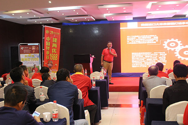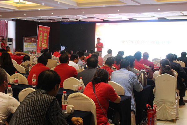 隨后,會議由百分農(nóng)業(yè)總經(jīng)理江總分析在當(dāng)今的形勢下如何順勢、借勢、造勢把品種做大做強(qiáng)以及介紹公司的基本情況;皖西朱經(jīng)理對隆兩優(yōu)1988的品種特性和如何高產(chǎn)進(jìn)行介紹;蘇皖大區(qū)經(jīng)理李總就市場管理方面和后續(xù)公司的品種進(jìn)行講解和介紹。接下來是來自定遠(yuǎn)代理商楊總、霍邱汪總、壽縣韓總對財(cái)神稻在當(dāng)?shù)氐谋憩F(xiàn)和推廣經(jīng)驗(yàn)的分享。會議的最后由亞華集團(tuán)總經(jīng)理孫總做最后的重要講話。