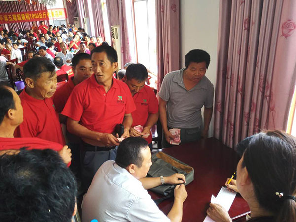 會(huì)議最后進(jìn)行了現(xiàn)場(chǎng)訂購(gòu)。到會(huì)人員紛紛排起了長(zhǎng)隊(duì),本次會(huì)議共預(yù)訂成功一萬多斤,為光山縣隆兩優(yōu)1988觀摩訂購(gòu)開啟了一個(gè)好的篇章。