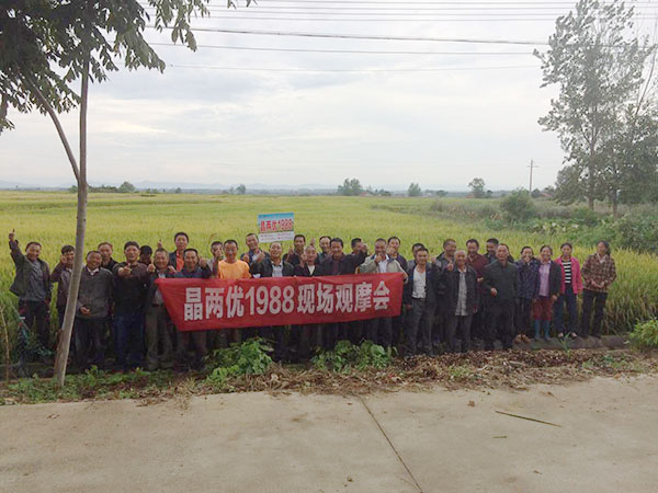 2017年9月10日,來(lái)自洋梓鎮(zhèn)各村的50余名農(nóng)戶在洋梓鎮(zhèn)曹老板的大地豐歌農(nóng)資店參加代理商盧總及曹老板共同舉辦的晶兩優(yōu)1988的觀摩訂購(gòu)會(huì)。