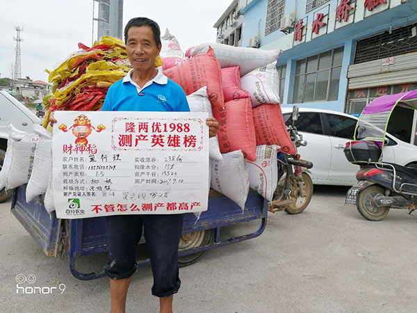 2017年9月12日上午11時,在宜豐召開了隆兩優(yōu)1988財神稻測產(chǎn)大會,參加此次測產(chǎn)大會的有二十幾個種植大戶和宜豐代理商涂總。