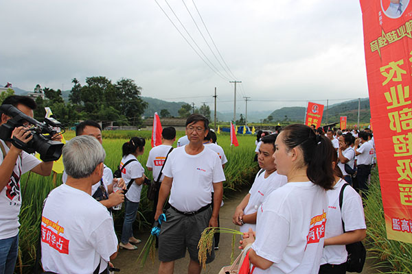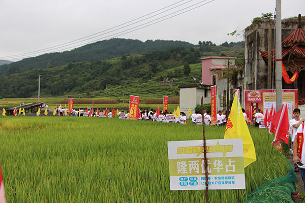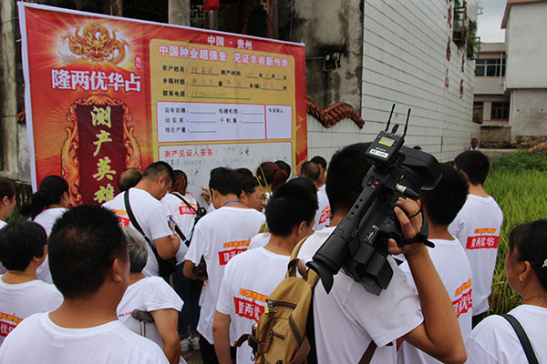2017年 9月10日,在貴州省都勻市平浪鎮(zhèn)河?xùn)|村,由湖南亞華種業(yè)有限公司主辦的“豐收傳奇 你我見(jiàn)證——隆兩優(yōu)華占貴州省級(jí)觀摩測(cè)產(chǎn)現(xiàn)場(chǎng)會(huì)”,在一場(chǎng)品種產(chǎn)量有獎(jiǎng)競(jìng)猜活動(dòng)中拉開(kāi)帷幕,由貴州省黔南州三名高級(jí)農(nóng)藝師、媒體記者以及150多名種業(yè)經(jīng)銷商組成的見(jiàn)證團(tuán),對(duì)隆兩優(yōu)華占進(jìn)行了現(xiàn)場(chǎng)測(cè)產(chǎn)驗(yàn)收,產(chǎn)量驚人!畝產(chǎn)高達(dá)1820.64斤,這個(gè)產(chǎn)量足足比農(nóng)戶種植的一般品種高出四五百斤。三名水稻專家在隆兩優(yōu)華占測(cè)產(chǎn)英雄榜上共同簽字確認(rèn),150多名經(jīng)銷商也紛紛簽字見(jiàn)證并留影,被媒體記者抓拍到了這個(gè)見(jiàn)證奇跡誕生的精彩時(shí)刻!