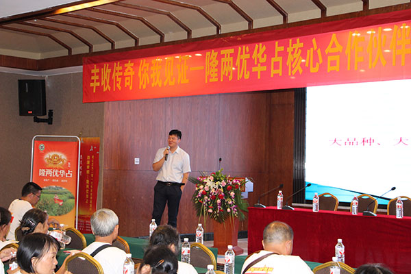 在都勻市港龍大酒店,亞華種業(yè)貴州區(qū)域經(jīng)理曹翔先生,主持了本次盛會(huì)的室內(nèi)會(huì)議。公司西南大區(qū)經(jīng)理文遠(yuǎn)方,向150多名經(jīng)銷商,詳細(xì)介紹了隆兩優(yōu)華占品種特征特性及榮譽(yù)展示。亞華事業(yè)部總經(jīng)理洪祥先生發(fā)表了重要講話"再續(xù)傳奇——25億財(cái)富分享計(jì)劃",對(duì)當(dāng)前種業(yè)形式和亞華品牌戰(zhàn)略,進(jìn)行了深入剖析和詳細(xì)講解,并對(duì)貴州市場(chǎng)管理工作做了重要指導(dǎo)。