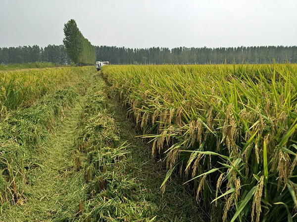 2017年9月14日,天朗氣清,在霍邱縣五塔鎮(zhèn)林義杰的一千畝隆兩優(yōu)1988的展示田,一場零售商測產觀摩會即將開始,而參與本次會議的并不是來自霍邱,而是來自霍山?;羯降亩涣闶凵桃坏降仡^上便迫不及待地查看財神稻的長勢,是否像傳說中的那樣全程高溫都不怕!去年和今年,霍邱縣都出現(xiàn)了極端的高溫天氣,恰好是在抽穗的敏感期上,大部分品種都出現(xiàn)了不同程度結實率降低的現(xiàn)象,抗高溫能力是農戶和零售商選種的重中之重。而財神稻不負眾望,沉甸甸的穗子謙虛地彎腰低頭,結實率高達百分之九十以上,籽黃葉青。后期連續(xù)的陰雨天氣,也沒有出現(xiàn)穗發(fā)芽和倒伏的現(xiàn),霍山的財神們嘖嘖稱贊,在今年極端的高溫和連續(xù)的陰雨下,財神稻表現(xiàn)極佳。