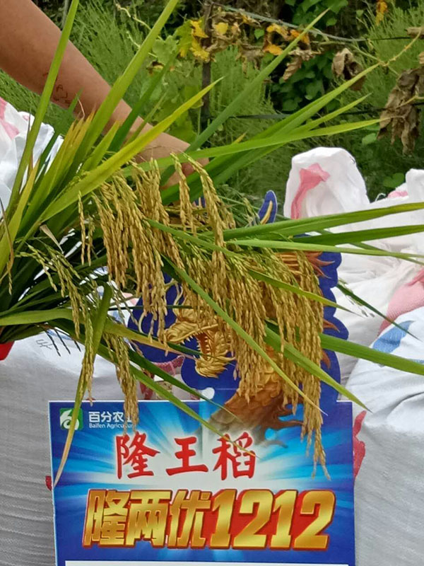 隆王稻——隆兩優(yōu)1212隨著徐徐秋風(fēng)搖曳著身姿,迎接著一年一度的秋收。9月13日上午農(nóng)戶(hù)賀祖發(fā)已備好收割機(jī),萬(wàn)事俱備,只等著懷化市種子經(jīng)銷(xiāo)商王梅香及附近的種植大戶(hù)來(lái)見(jiàn)證“隆王稻”的收割現(xiàn)場(chǎng)。