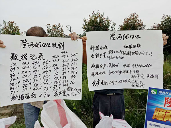 田的面積不大,但收割的產(chǎn)量卻并不少,2.7畝田,收獲了52袋谷子5227斤,折算每畝收獲1936斤濕谷,扣除20%的水分,干谷產(chǎn)量高達(dá)1549斤/畝田。當(dāng)問(wèn)及種植戶(hù)賀祖發(fā)對(duì)隆王稻——隆兩優(yōu)1212這個(gè)品種是否滿(mǎn)意時(shí),他回答到:“種隆王稻,我不后悔”。