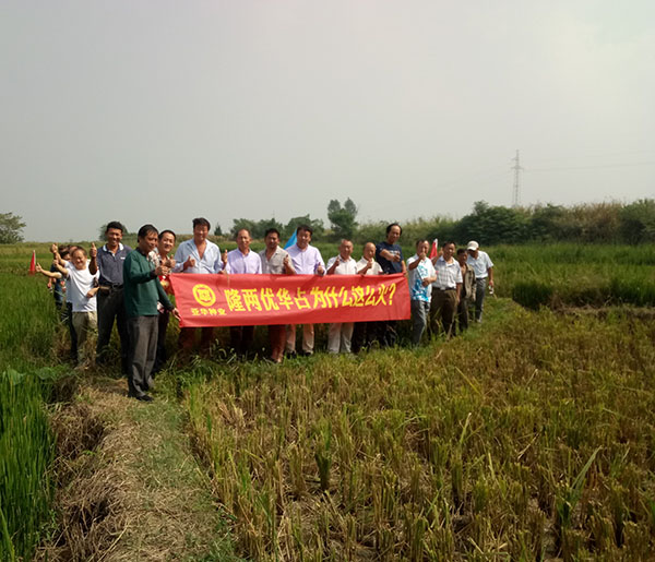 2017年9月13號,在肥東縣店埠區(qū)域迎來了一場零售商及種植大戶隆兩優(yōu)華占的現場觀摩會。天氣格外的晴朗,參加觀摩會的人員9點半準時來到代理商蔡仕開的門市部,由大巴車統(tǒng)一將觀摩人員送到觀摩田塊現場。大家一下車,望眼過去全是插滿隆兩優(yōu)華占彩旗的田塊?,F場氣氛熱鬧,由亞華安徽分公司營銷經理劉向明給零售商及大戶進行田間講解,主要包括如何防止病蟲害,如何去施肥,如何去有效的管理田塊。介紹完之后,有好多大戶去到隆兩優(yōu)華占田里面數起了分蘗數,有效穗粒,結實率等。整體田間表現都十分優(yōu)秀,其中直播田表現出長勢清秀、植株相對較矮、有效穗較多但穗型不大。移栽田整體表現較為優(yōu)異,向種植戶咨詢得知,該田施肥水平較高約為復合肥100斤/畝,表現出穗型大且結實率高。就這樣伴隨著笑聲、稱贊聲,由劉向明組織大家進行了最后的集體田間大合照。所有到現場觀摩的人都由衷地豎起了大拇指,圓滿結束了隆兩優(yōu)華占的田間觀摩會。