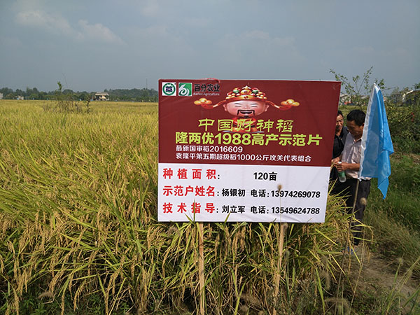實收實測實稱,專家組全程監(jiān)督,經(jīng)銷商和農(nóng)戶共同見證,最后匯總?cè)齻€測產(chǎn)驗收點的數(shù)據(jù),專家組一致認為驗收的財神稻隆兩優(yōu)1988產(chǎn)量達標(biāo)、生長平衡,轉(zhuǎn)色黃亮,結(jié)實率高等各項指標(biāo)均已達標(biāo)或超過了國家超級稻的標(biāo)準(zhǔn),順利通過超級稻驗收,實現(xiàn)連續(xù)兩年通過農(nóng)業(yè)部超級稻驗收。