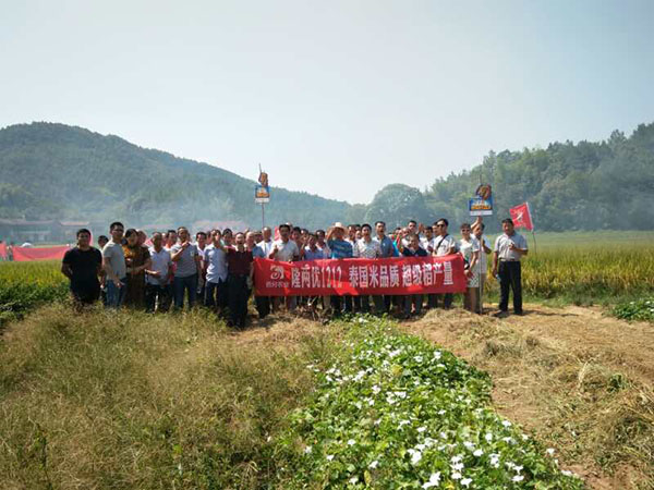 2017年9月17日,撫州市80余經(jīng)銷商和零售商相聚于南城天井源鄉(xiāng)曾坊村來(lái)觀摩隆王稻隆兩優(yōu)1212。田間觀摩中,各地的代理商和零售商朋友們都親自下田查看品種抗病性、結(jié)實(shí)率和產(chǎn)量表現(xiàn)。事實(shí)證明,我們的隆兩優(yōu)1212表現(xiàn)優(yōu)異,獲得全體參會(huì)人員的一致好評(píng)。